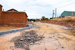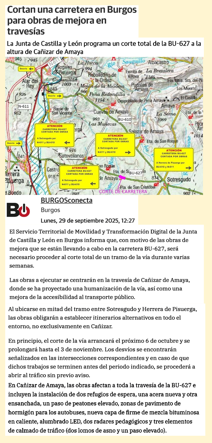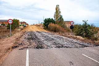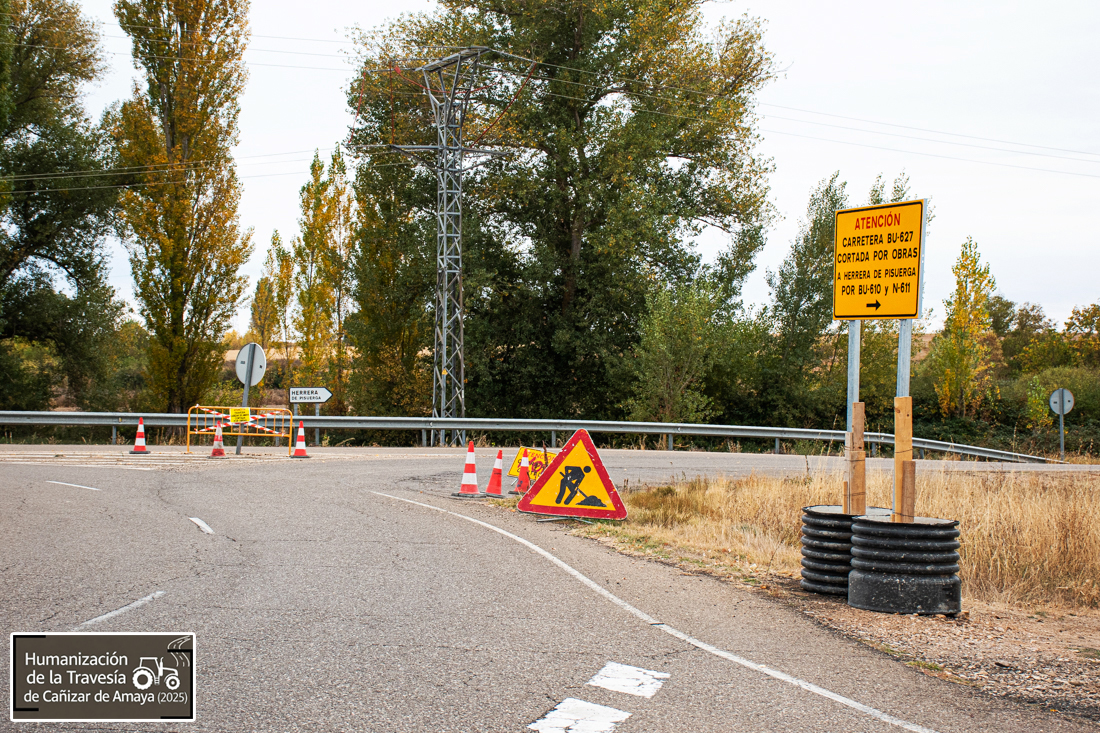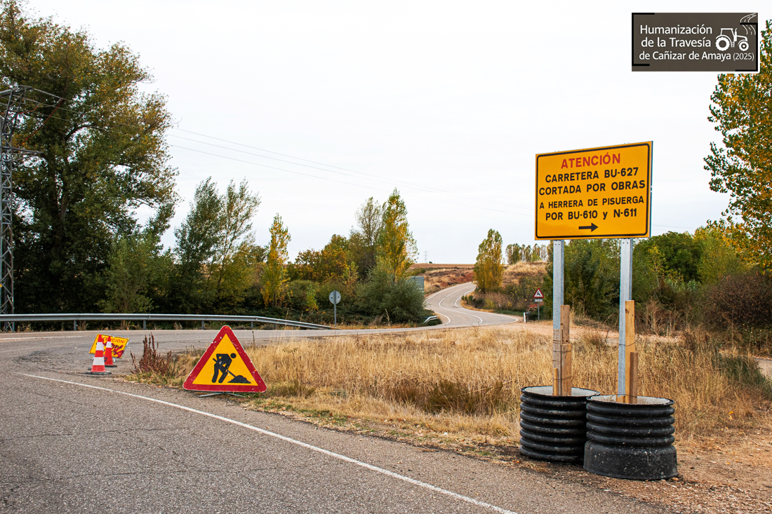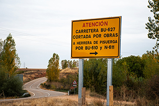 Estaba cortada en ese tramo de la carretera BU-627 y se estaba procediendo a adecuarla a lo que la Junta de Castilla y León denomina «Humanización de Travesías».