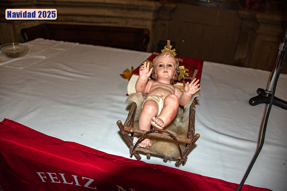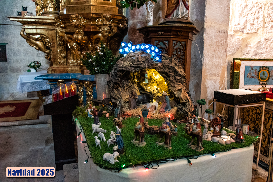 Todos los años las mujeres ponen un Belén y el altar luce con un Niño Jesús con los buenos deseos navideños.