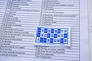 En el bingo musical que se hace en Sandoval de la Reina, es habitual que unos a otros de digan, en voz alta y clara, los números que corresponden a las canciones y no está mal visto.