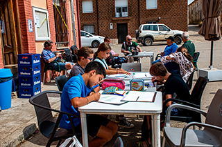 Haciendo los dibujos por la mañana