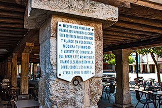 Vistas del camino de la Carretera, incluyendo la iglesia de San Lorenzo, avenida de Alar del Rey de Villadiego, calle de Vega, Mercería Perfumería D. Miguel, Bar El Rincón de Camy, Confecciones Alipio Arroyo Humada, una puerta de madera en la plaza porticada, Bar Peruco tras la jubilación de Chuchi con agradecimiento a los clientes, cartelera de cine, cartel del Proyecto Corcino sobre la protección de las crías de corzo, placa altimétrica (840,1 m), columna del ayuntamiento con placa y mediorrelieve de San Pedro, placa homenaje al abuelo y al burro.